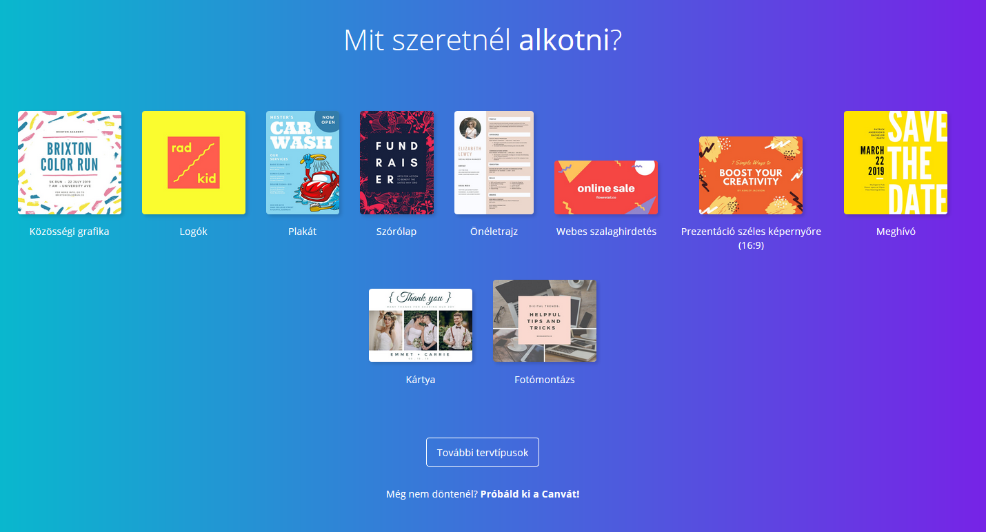 A Canva komolyabb munkát is lehetővé tesz, számos tartalom típushoz kínál egyszerű alkotási folyamatot: