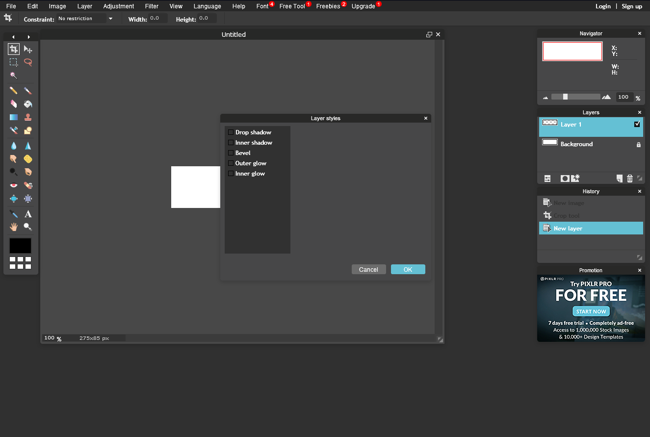 A Pixlr is egy online, telepítés nélküli és ingyen használható Photoshop klón. Nagy mértékben hasonlít a Photoshop-ra és számos, a Photoshop-ból ismert hasznos funkció (pl. rétegek, réteg stílusok) megtalálható benne. Flash szükséges a használatához.