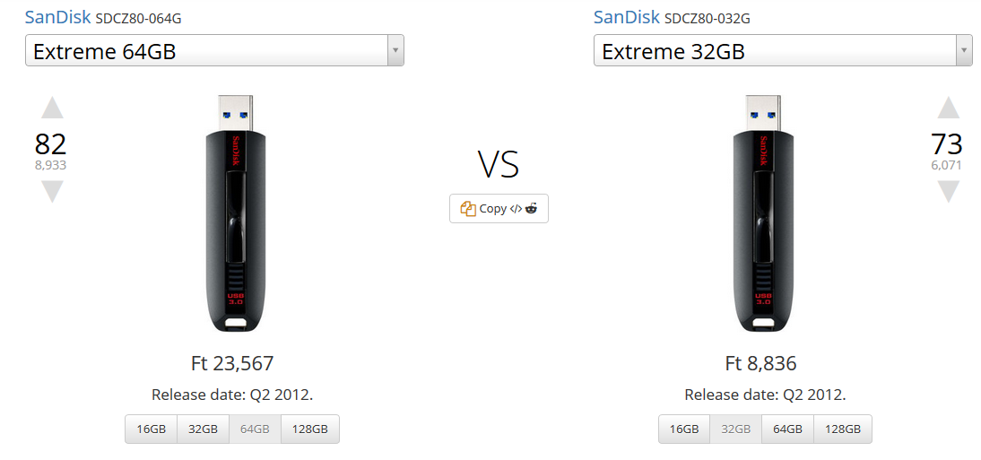 Összehasonlítani is lehet, ehhez csak bal oldalon be kell jelölni kettőt a listából.