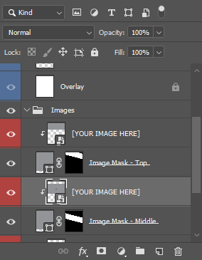 Látható, hogy jól dokumentált, jelezve van, hogy hova kell a képeket elhelyezni, tehát csak annyi a teendő, hogy dupla klikk a rétegnél lévő kis képre, aminek a hatására egy újabb, ideiglenes psb fájl keletkezik. Oda kell a képet betenni, majd mentés után megjelenik az "igazi" psd fájlban.