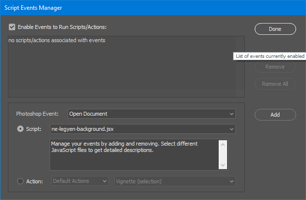 Nyisd meg a File > Scripts > Scripts Events Manager menüpontot.