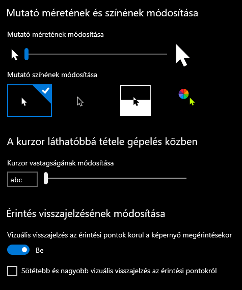 Még jobban testreszabható az egér mutatója, beleértve a méretet is (keress rá a Start menübe, hogy egér).