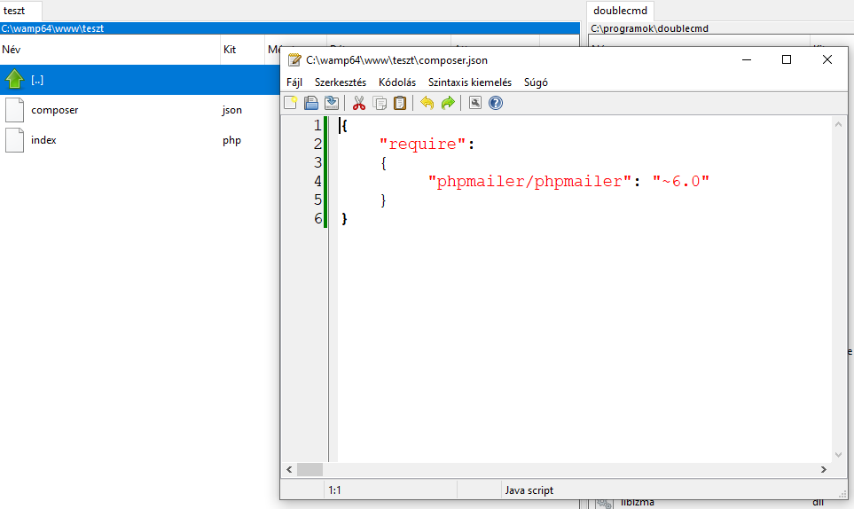 A telepítés után a weboldal mappájába hozz létre egy composer.json fájlt.