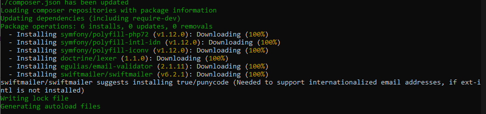 És ennyi, már kész is. Megfigyelhető, hogy létrejött a vendor mappa, benne a kért dologgal, de megjelent a composer.json fájl, amit generált magának, ami később is használható.