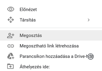 Ha jobb egérrel kattintunk egy videóra, akkor megjelenik a megosztás.