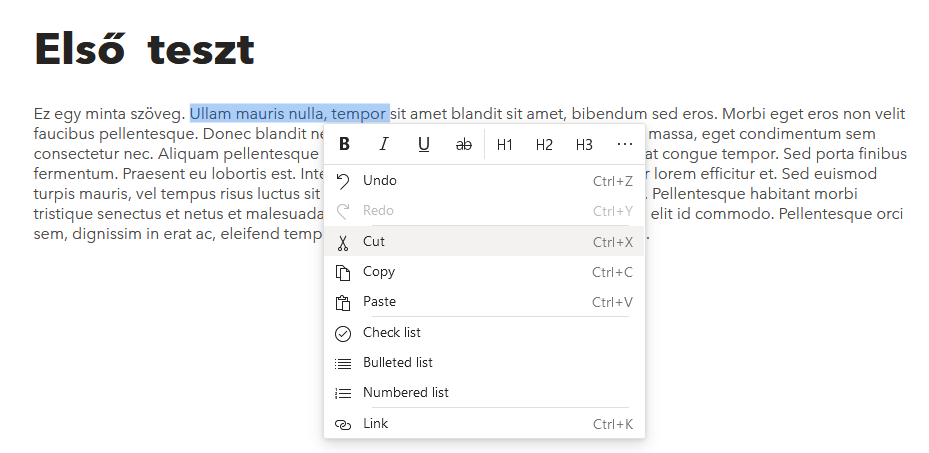 Persze egyszerű szövegek is létrehozhatók formázással.