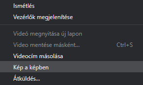 Chrome esetén komplikáltabb a dolog és nem is minden weboldalnál működik. Youtube esetén a videókon kell kattintani kétszer jobb egérrel és "Kép a képben".