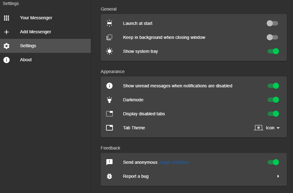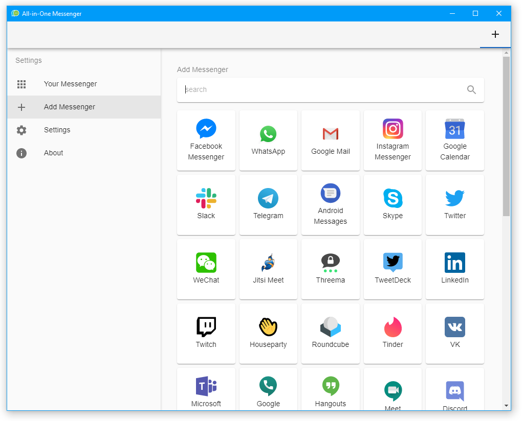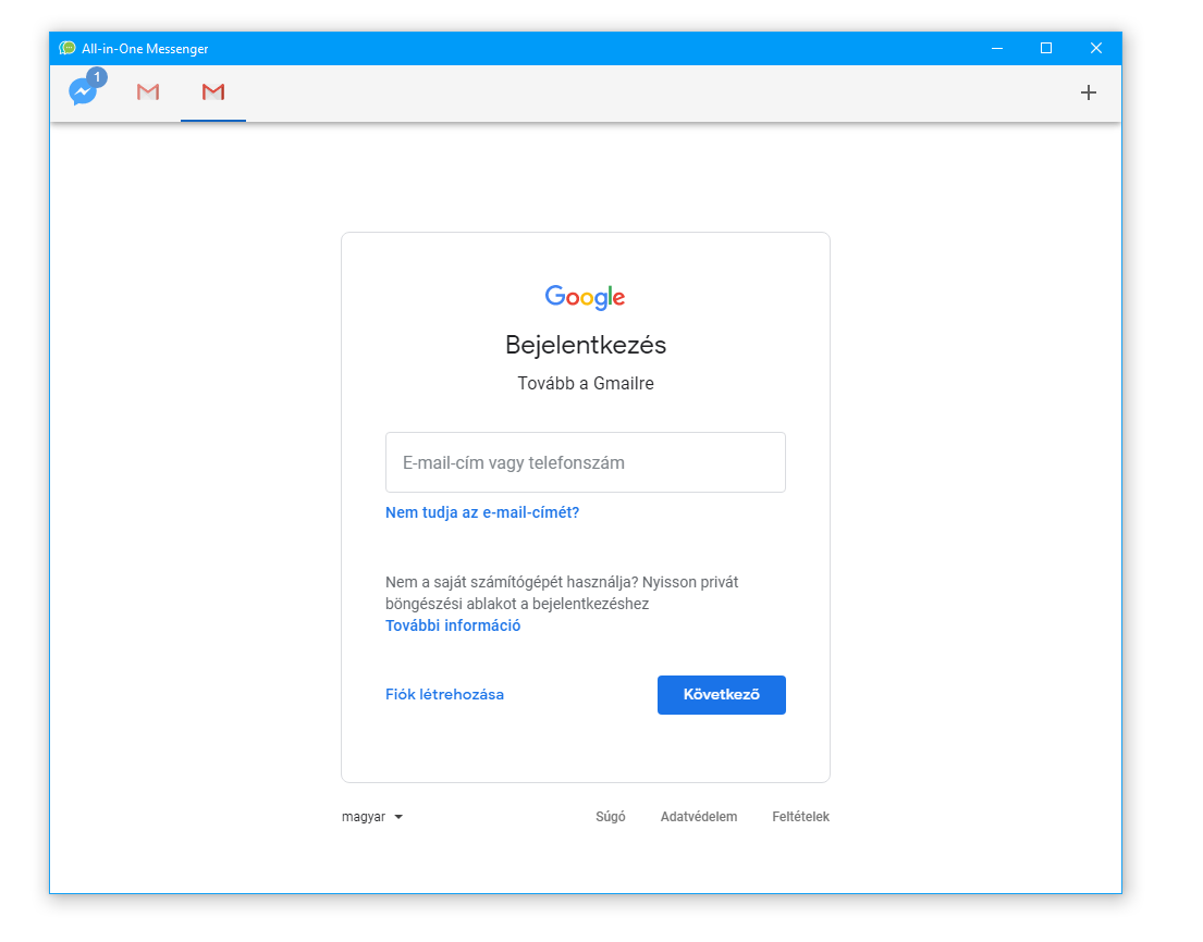 A + gombra kattintva újabb üzenetküldőt vehetünk fel, vagy akár éppen pl. a Gmailt is több példányban.