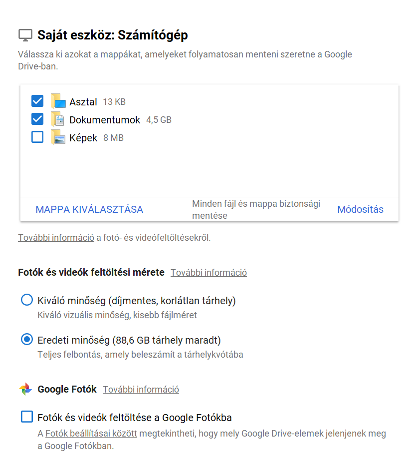 Teljesen magyar nyelvű és jó a fordítás, a használata pedig rém egyszerű, hiszen csak ki kell választani egy mappát a Google Drive-on és a telefonon, aztán automatikusan szinkronizálja őket. Így a létrejött, módosult fájlok mindegyik eszközön frissülnek.