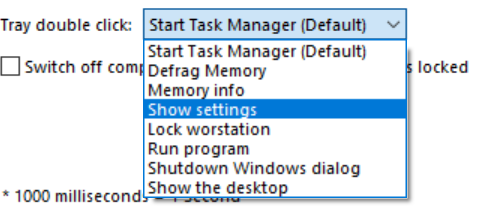 Additional > Tray double click
