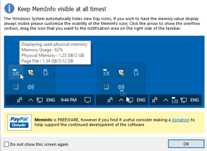 Alapesetben elindítja a feladatkezelőt, de a memory info esetén megmutatja a memória használatot.
