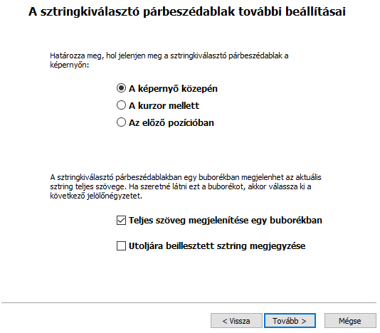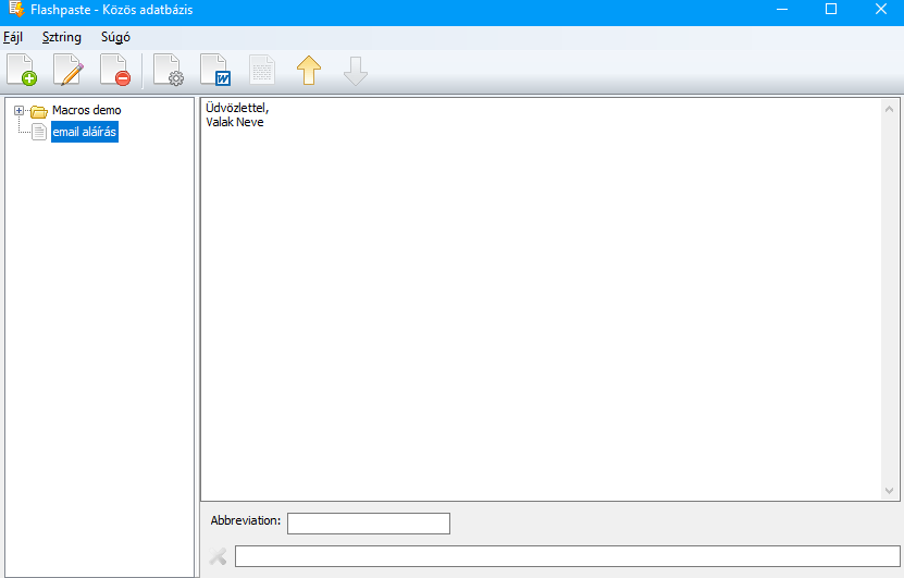 Ha az ikonjára jobb egérrel kattintunk és "Kiinduló ablak megnyitása", akkor törölhetők, módosíthatók a létező szövegek és újak is rögzíthetők.