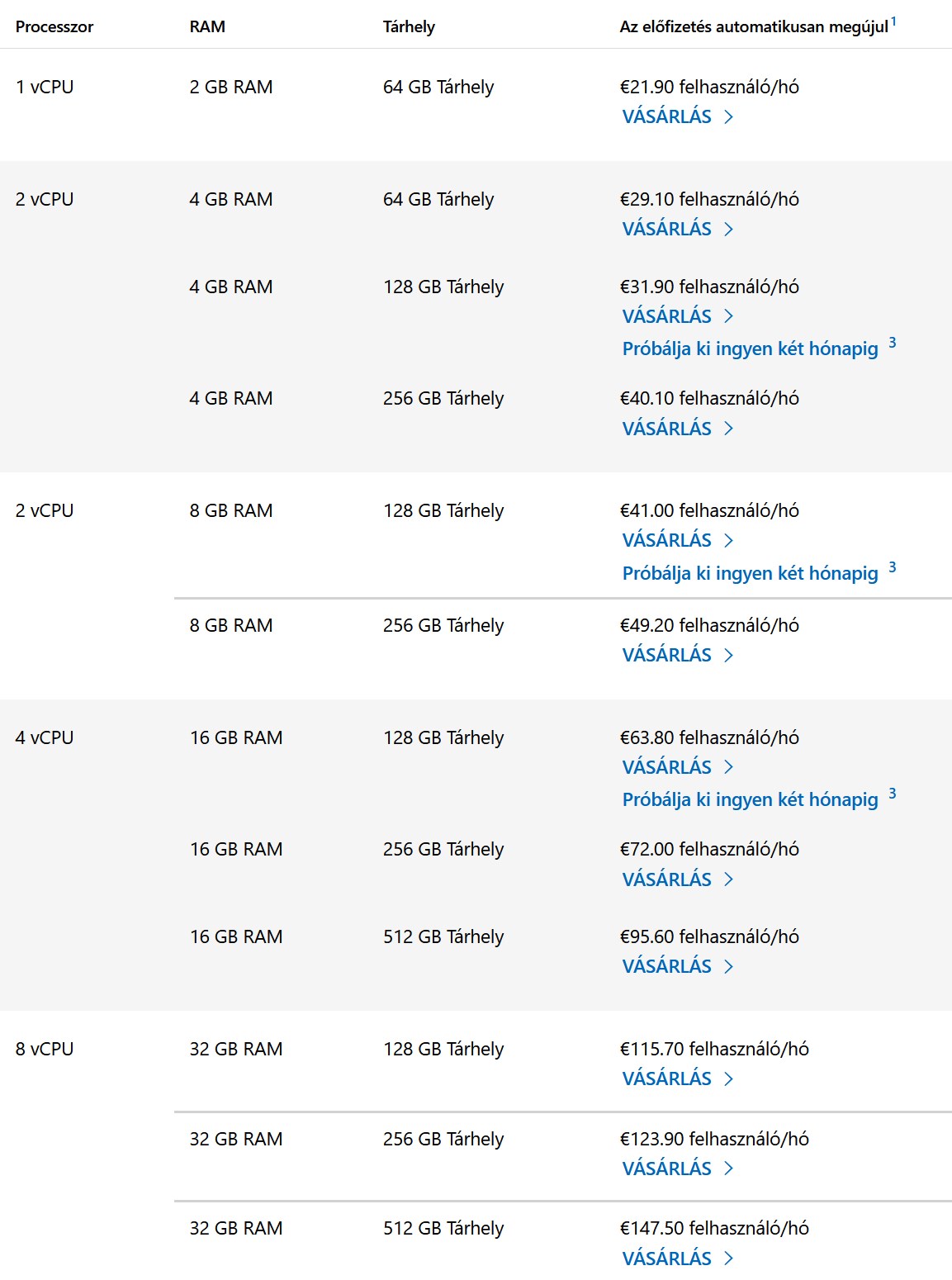Többféle hardver változatban is elérhető és a 2GB RAM a minimum, aminek az ára 7800 Ft havonta.