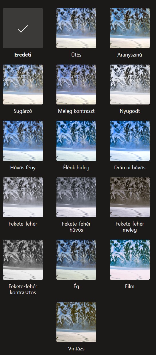 A szűrésben pedig különféle effekteket adhatunk a képekhez.