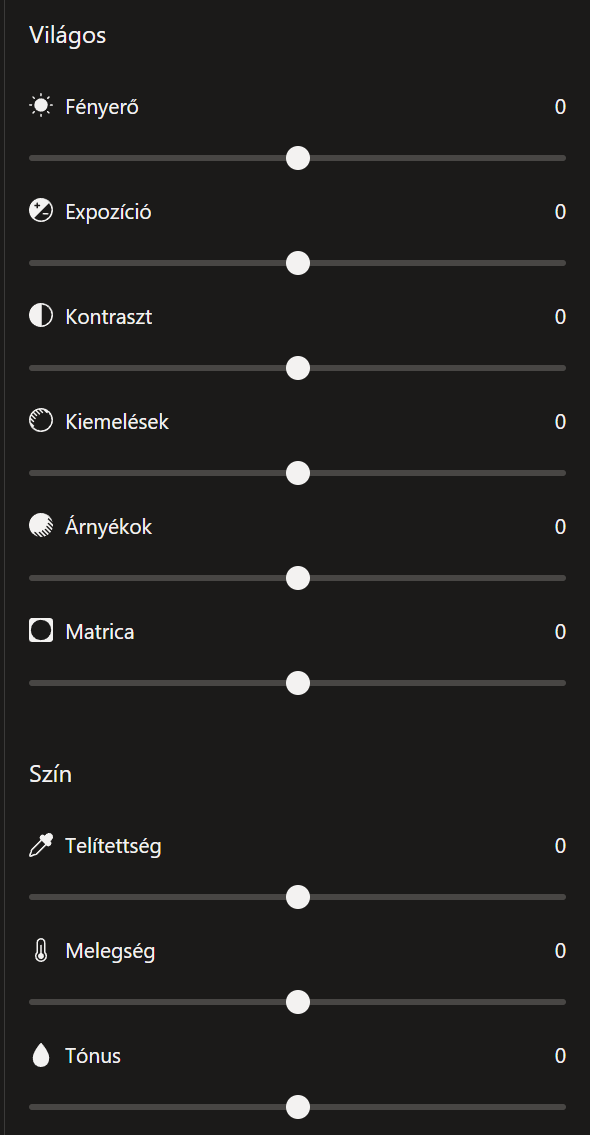 Ha például a telítettséget lehúzzuk, akkor fekete-fehér képet is kaphatunk.