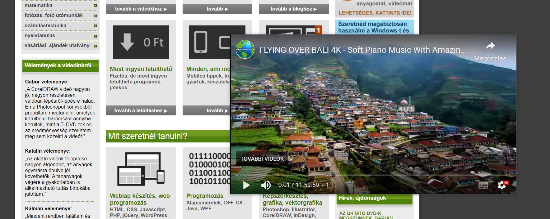 „Az oktató videók felépítése nagyon átgondolt, az anyagok egymásra épülve jól követhetők. A tananyagok végére a gyakorlatban is alkalmazható tudás birtokába jutottam.”