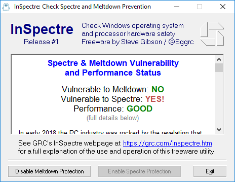 A program tájékoztatása szerint a Meltdown szoftveres úton javítható (Windows esetén ez a Windows Update), míg a Spectre BIOS (UEFI) vagy processzor frissítéssel. Ezt az alaplap gyártója biztosíthatja leginkább.