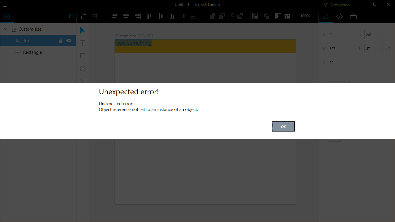 A Lunacy még nem annyira kiforrott, mint a Gravit (2018 áprilisában), ezért ha tényleg dolgozni is akarsz, akkor a Gravit mindenképpen megfelelőbb számodra. De azért már most is használható, bár a teszt során rögtön sikerült egy hibába belefutni (ráadásul az Ok gombra kattintva mindig újra megjelent a hiba üzenet, így be kellett zárni az egész programot):