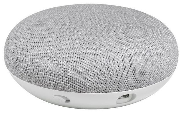A Google Home Mini egy olyan változat, amely ugyanolyan teljes funkcionalitással rendelkezik, de kisebb, kavics alakú formában. 10 cm átmérőjű, egy szövet felsővel, ami alatt fehér színű állapotjelző lámpák ragyognak. Nincs némító kapcsolója, csak némító gomb, és mikro-USB-kapcsolatot használ a tápellátáshoz.