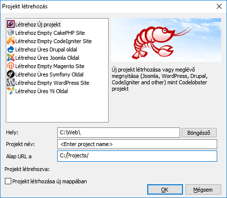 Támogatja a különféle CMS-eket, keretrendszereket, lehetőség van projektek létrehozására (de egyszerű fájlokkal is dolgozhatunk)