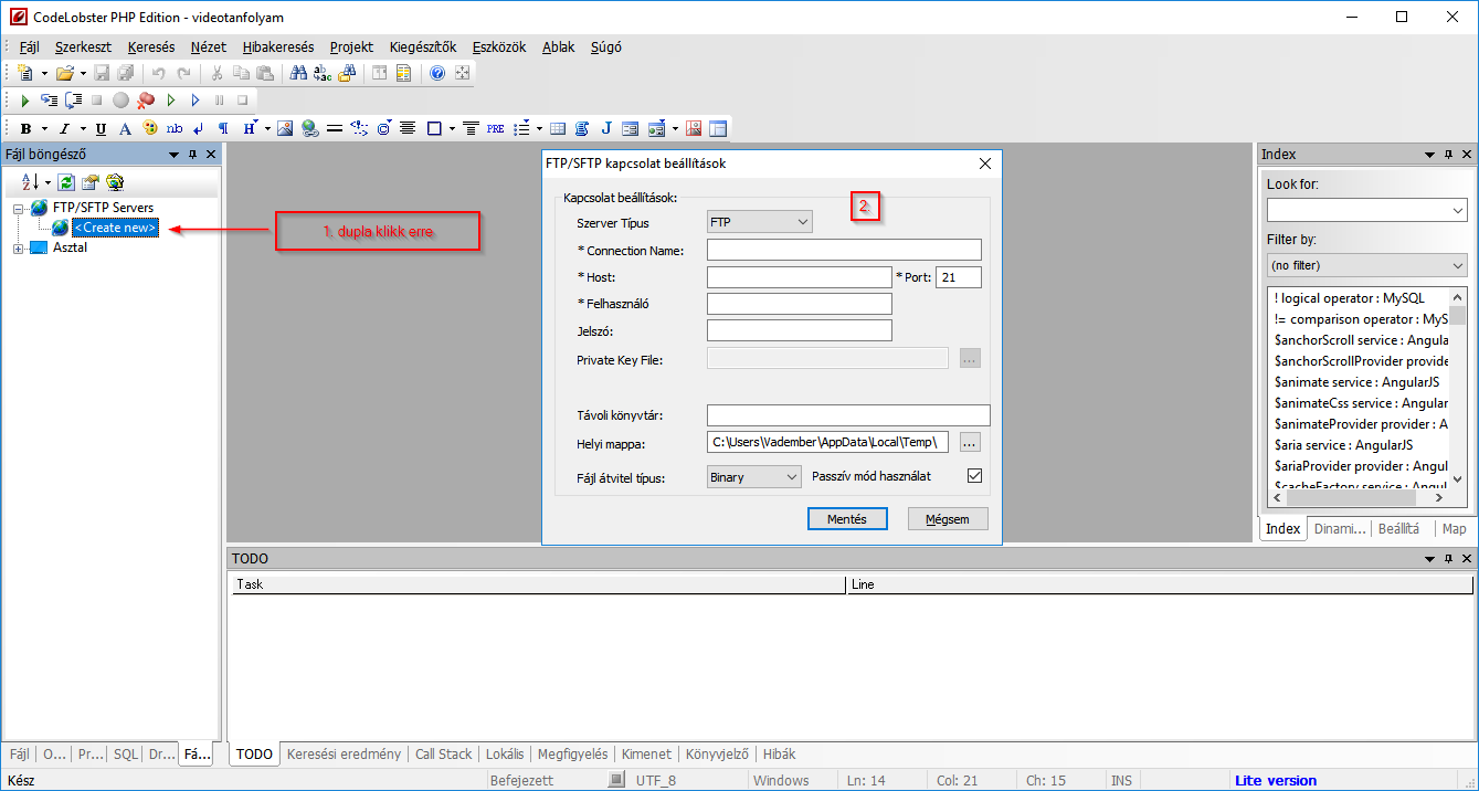 FTP támogatás, közvetlenül dolgozhatunk távoli fájlokkal (Eszközök > FTP / SFTP)